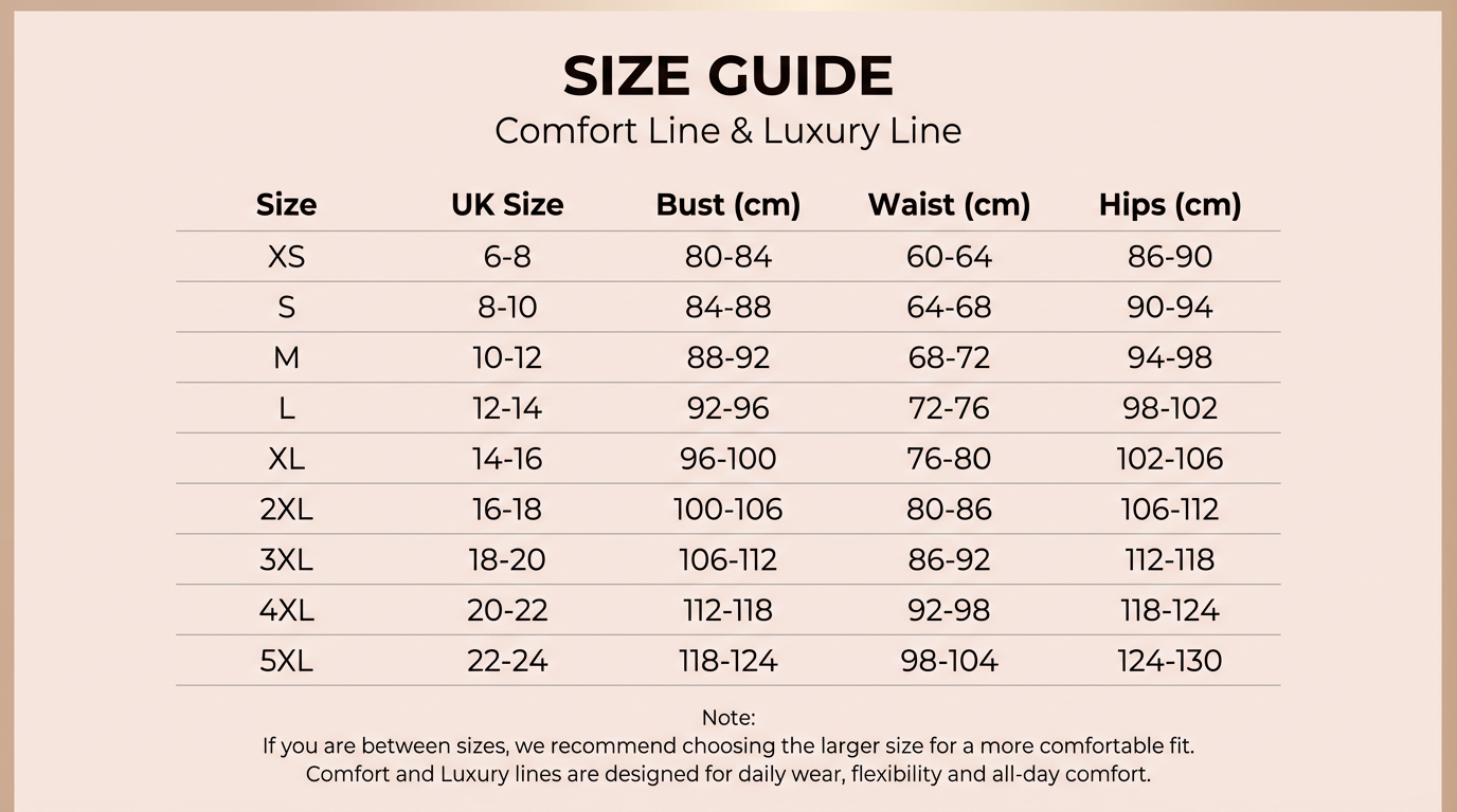 Our shapewear is designed to slim and smooth, so picking a size too small will cause bulges and discomfort.